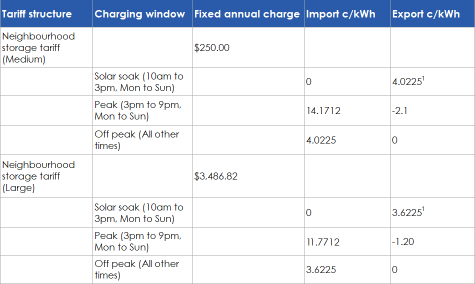 The tariff structure has been designed for community-scale storage systems installed on our low-voltage network. There are two tariffs, based on inverter capacity: