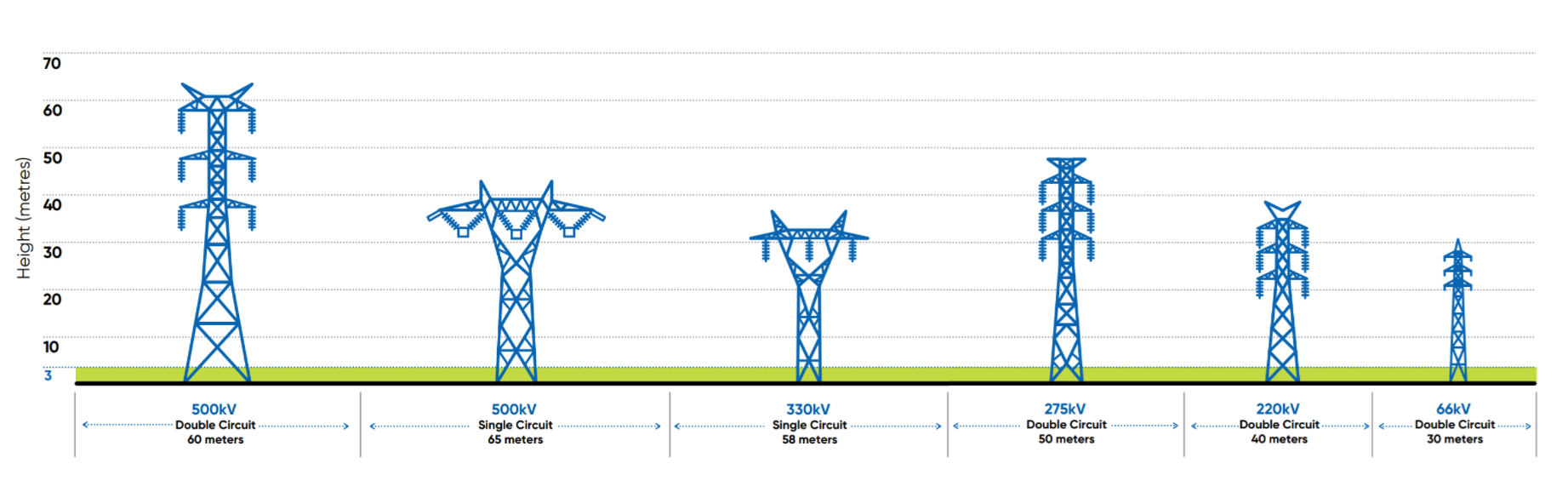 - Avoid planting any vegetation within five meters of towers to keep clear access at all times.